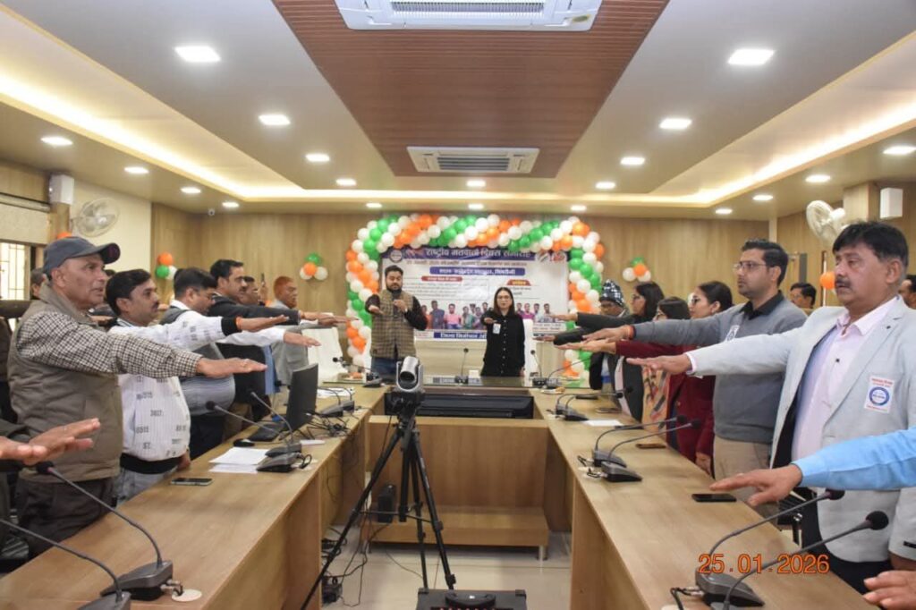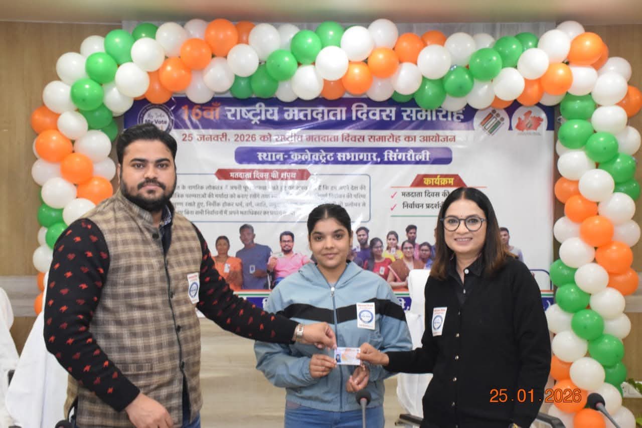 सिंगरौली 25 जनवरी 2026/ भारत निर्वाचन आयोग के निर्देशों के अनुसार सिंगरौली में 16 वां राष्ट्रीय मतदाता दिवस मनाया गया। मुख्य अतिथि अपर कलेक्टर एवं उप जिला निर्वाचन अधिकारी श्री संजीव पाण्डेय ने कलेक्ट्रेट सभागार में आयोजित समारोह का शुभारंभ किया। इस अवसर पर अपर कलेक्टर एवं उप जिला निर्वाचन अधिकारी ने कहा कि हमारे देश में लोकतांत्रिक शासन व्यवस्था है। यह विश्व की सर्वश्रेष्ठ शासन व्यवस्था है। लोकतंत्र में सबकी जवाबदेही जनता के प्रति होती है। मतदाता ही लोकतांत्रिक व्यवस्था का आधार है। हर पात्र व्यक्ति मतदाता सूची में अपना नाम शामिल कराकर मतदान करे और लोकतंत्र को सुदृढ़ करने में योगदान दे। मतदान करके हम अपनी इच्छा के अनुसार जनप्रतिनिधि चुन सकते हैं। जनहित के सर्वाधिक कार्य लोकतांत्रिक व्यवस्था में ही होते हैं। हर मतदाता अपने मत का महत्व समझें और मतदान करें इसी उद्देश्य से मतदाता दिवस मनाया जा रहा है अपर कलेक्टर एवं उप जिला निर्वाचन अधिकारी ने कहा कि हर पात्र व्यक्ति मतदाता सूची में नाम शामिल कराए और मतदान करे। मतदाता के रूप में अपने कर्तव्य का हर मतदाता निर्वहन करे। निर्वाचन कार्य की प्रक्रिया मतदाता सूची बनाने से शुरू होती है जो मतगणना पर समाप्त होती है। इस प्रक्रिया को पूरा करने मं। हजारों अधिकारी और कर्मचारी पूरे मनोयोग से कार्य करके सफल बनाते हैं। उन्होने कहा कि 18 साल का होने पर मतदान का अधिकार मिलता है। इसके साथ-साथ ड्राइविंग लाइसेंस बैंक में खाता खुलवाने सहित अन्य कई अधिकार भी मिलते हैं। सभी युवा मतदाता मतदान करके लोकतंत्र के विकास में योगदान दें। समारोह के दौरान उप जिला निर्वाचन अधिकारी के द्वारा मतदाता दिवस की शपथ दिलाई गई। उन्होने ने समारोह के दौरान नव मतदाताओं को एपिक कार्ड प्रदान किया। एवं निर्वाचन कार्य में उतकृष्ट कार्य करने वाले अधिकारियो कर्मचारियो को प्रशस्ति पत्र देकर सम्मानित किया गया। कार्यक्रम में मुख्य निर्वाचन पदाधिकार के संदेश को लाईव टेलीकास्ट के माध्यम से देखा एवं सुना गया। इस अवसर पर नगर निगम आयुक्त श्रीमती सविता प्रधान, डिप्टी कलेक्टर माइकेल तिर्की, तहसीलदार सविता यादव, जान्हवी शुक्ला, नायब तहसीलदार, अंग्रणी महा विद्यालय के प्राचार्य एम.यू सिद्दीकी, लोक सेवा प्रबंधक रमेश पटेल सहित मास्टर ट्रेनर, बीएलओ सहित निर्वाचन कार्य सलग्न अधिकारी कर्मचारी उपस्थित रहे।