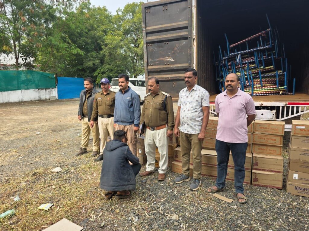 मंदसौर पुलिस थाना नाहरगढ द्वारा एक अंतर्राज्यीय शराब लोहे के पलंग की फर्जी बिल्टी की आड में ट्रक कन्टेनर में ले जाई जा रही 20 लाख रुपये की अवैध अंग्रेजी ब्रांडेड शराब पकडी गई
