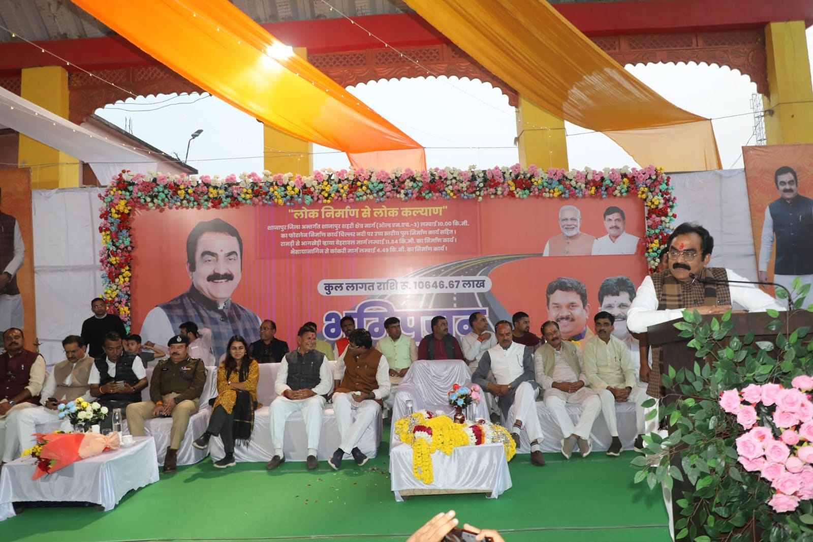 लोक निर्माण विभाग मंत्री श्री राकेश सिंह ने कार्यक्रम को संबोधित करते हुए कहा कि आज शाजापुर जिले में लगभग 107 करोड़ रूपये के कार्यों का भूमिपूजन हुआ है, जिससे जिले को विकास की नई गति प्राप्त होगी। उन्होंने कहा कि सड़के समृद्धि और जागृति दोनों लेकर आती हैं। पहले छोटी-छोटी सड़कों के लिए काफी संघर्ष करना पड़ता था, परन्तु वर्तमान में मुख्यमंत्री डॉ. मोहन यादव के नेतृत्व में प्रदेश में सतत विकास हो रहा है।