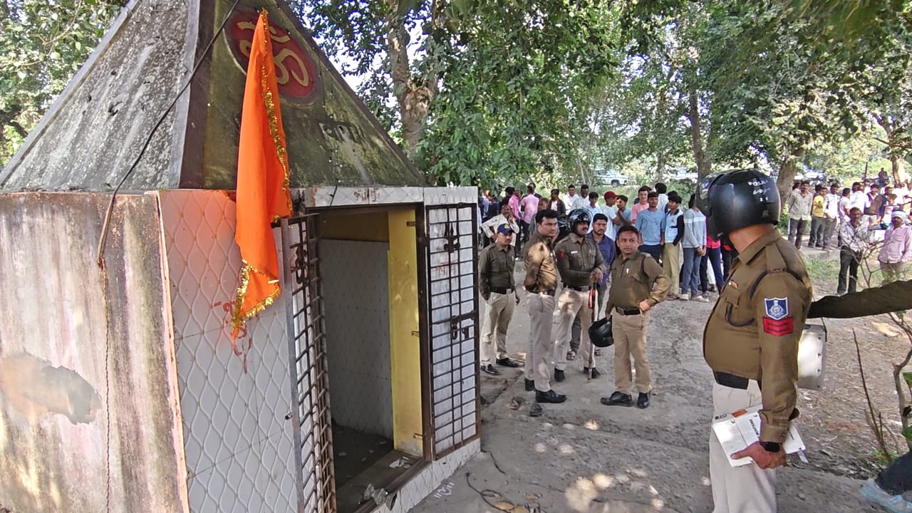 बुरहानपुर के लालबाग थाना क्षेत्र के बिरोदा गांव में आसामाजिक तत्वों ने गांव के शिव मंदिर को क्षतिग्रस्त कर दिया है, जब महिलाएं सुबह मंदिर में दर्शन करने पहुंची तो उन्होंने यह माजरा देखा और गांव वालों को सूचना दी गांव वालों की मंदिर के पास भीड़ जमा सूचना पर जिला प्रशासन और पुलिस प्रशासन के आल्हा अधिकारी मौके पर पहुंचे पुलिस ने ग्रामीणों की शिकायत पर सामाजिक तत्वों की तलाश शुरू कर दी है जहां मंदिर है उसे खेत मालिक की शिकायत पर और सामाजिक तत्वों के खिलाफ किस दर्ज किया जा रहा है घटना को लेकर गांव वालों में काफी आक्रोश है गांव वालों की मांग है आरोपियों के खिलाफ सकते सख्त कार्रवाई की जाए पुलिस और प्रशासन ने ग्रामीणों का कार्यवाही का भरोसा दिया ।