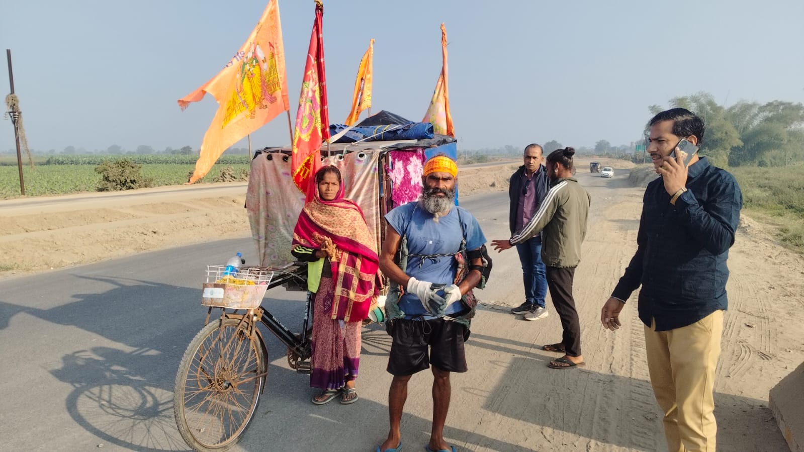 बुरहानपुर जिले से एक अनोखी यात्रा शाहपुर मार्ग होते हुए महाराष्ट्र की और निकली। जिसका उद्देश्य सनातन धर्म की रक्षा और गौमाता की रक्षा करना। बता दे नरेश गंगवाल ने बताया मै मेरी पत्नी सुमित्रा देवी और बेटा प्रल्हाद पटेल निवासी ग्राम मुझेना संतोष जिला बरेली उत्तरप्रदेश से 31 महीने पहले 1 मई 2023 से दंडवत यात्रा लेकर मै निकला हु, जो चार धाम, 12 ज्योतिलिंग, 18 शक्तिपीठ, अर्ध नरेश्वर, वैष्णो माता, अमरनाथ, मेरीपुर बालाजी, मथुरा, अयोध्या, गोरखनाथ मंदिर नेपाल के पशुपति नाथ तक ऐसे ही दंडवत यात्रा जाएगी। यह यात्रा 12 साल तक चलती रहेगी। दंडवत यात्री नरेश गंगवाल ने कहा हमारे अभी 7500 मिलोमीटर 10 राज्यों में मत्था टेक कर दर्शन हुए है अभी हम 11 वे राज्य महाराष्ट्र में प्रवेश करने जा रहे है। हमारा इस यात्रा को लेकर उद्देश्य यह है कि। सनातन धर्म की विश्व मै जय जय कार हो, विश्व मै सनातन धर्म का झंडा फहराए, और विश्व मै गौमाता को राष्ट्र माता का दर्जा मिल जाए। इसी लिए पीट के बल घिसट रहा हु। उन्होंने कहा लोग धामों पर जाते है, ओलाद, धन जायजाद, पद मांगते है, लेकिन मुझे इनकी अभिलाषा नहीं है, हर दर पर जा रहा है मत्था टेक रहा हु, मै बस सनातन धर्म की रक्षा करने की मन्नत मांग रहा हु। और जो लोग मानवता से दानवता की और बढ़ रहे है उन्हें सद्बुद्धि की कामना कर रहा हूँ।